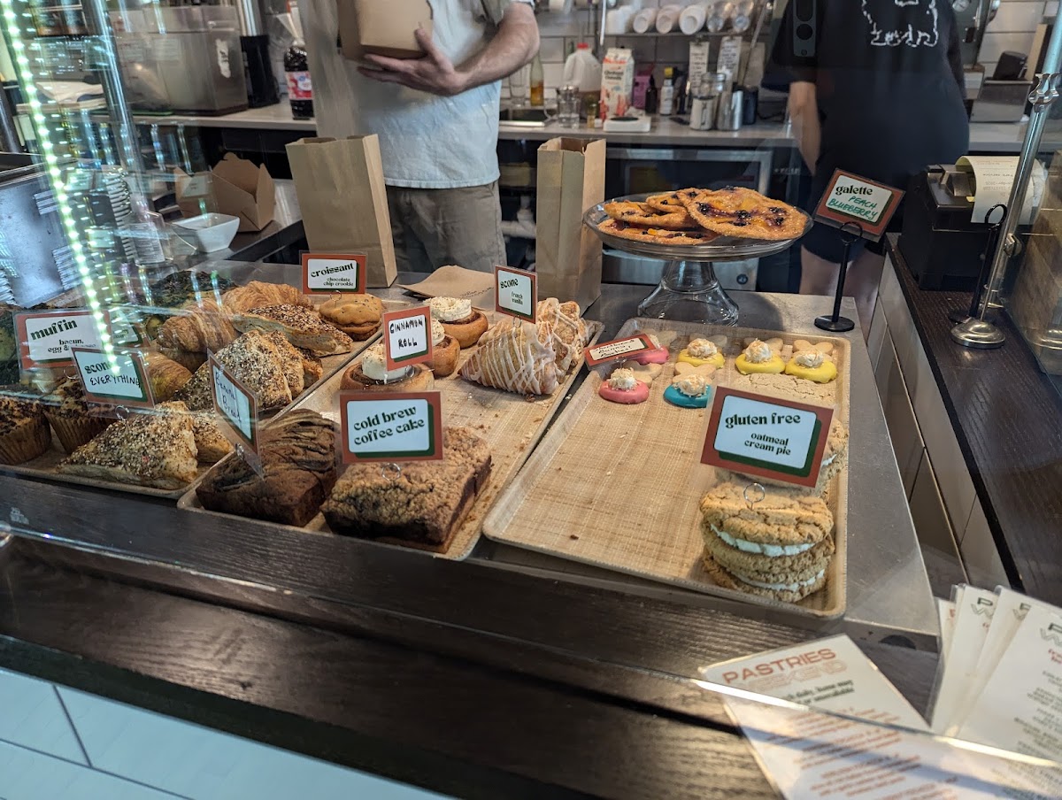 But the delight doesn’t stop at coffee. Treat yourself to their deliciously tempting Stacked Bloody, a powerful brunch companion, or savor the sweetness of a Blueberry Peach Galette, which captures the essence of summer with each indulgent bite. For those who prefer a lighter snack, their range of baked goods, including the Brown Butter Banana Bread and Chocolate Chip Cookie, promises to satisfy your sweet tooth, with many treats offering vegan options for those seeking plant-based choices.